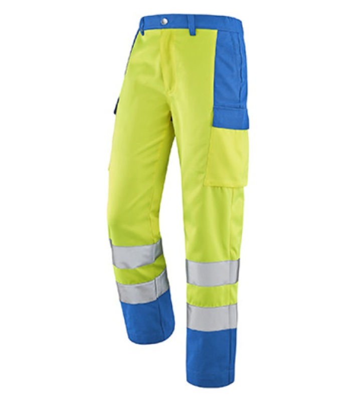 PANTALON DE TRAVAIL HAUTE VISIBILITE M-LINE. POLYESTER / COTON. EN ISO 13688, EN ISO 20471 CL2. T36/38 A 60/62 - JAUNE/AZUR ref.PAN9826JA