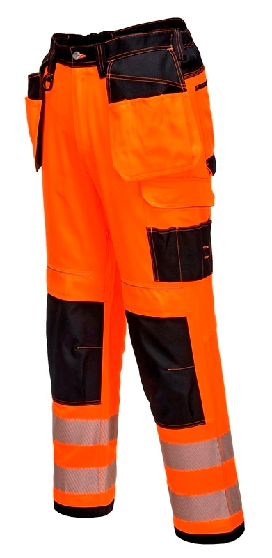 PANTALON DE TRAVAIL HAUTE VISIBILITE FLEXIVISION BICOLORE HOLSTER POCHES GENOUX. POLYESTER / COTON, 300 G/M². EN ISO 20471 CL2. T36 À 60 - ORANGE/NOIR ref.PANT501ONR