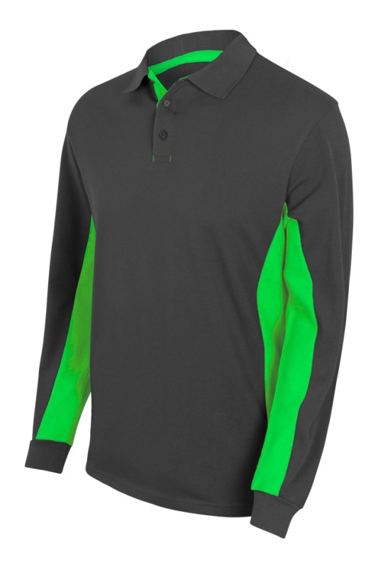 POLO UNISEXE COMBI-DUO MANCHES LONGUES. 60% COTON / 40% POLYESTER, 180 G/M². TXS A 3XL - GRIS/VERT ref.POL5514GRVT