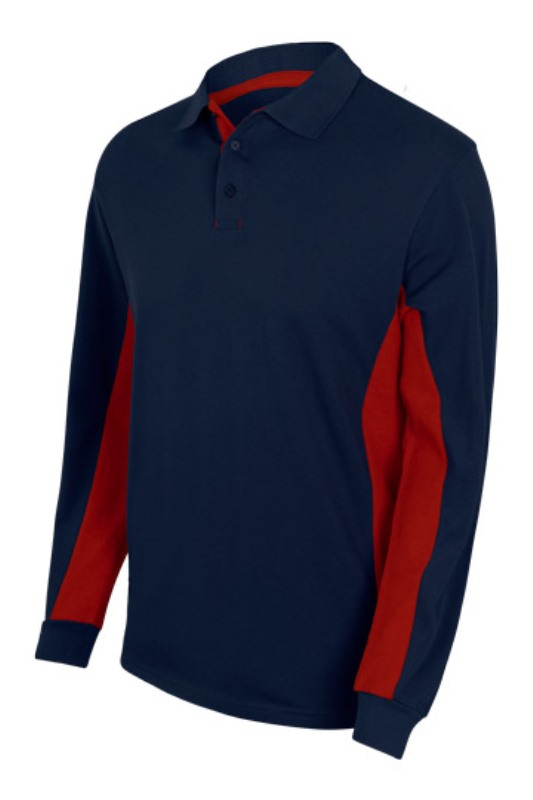 POLO UNISEXE COMBI-DUO MANCHES LONGUES. 60% COTON / 40% POLYESTER, 180 G/M². TXS A 3XL - MARINE/ROUGE ref.POL5514MRRG
