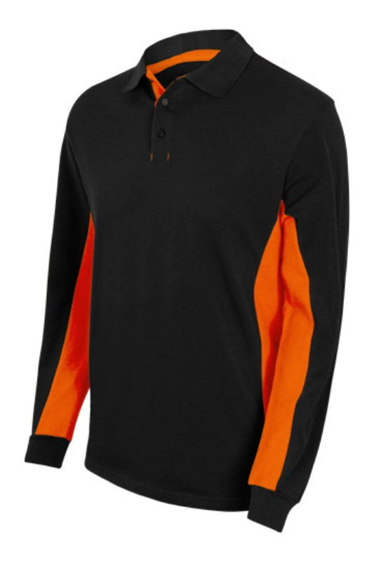 POLO UNISEXE COMBI-DUO MANCHES LONGUES. 60% COTON / 40% POLYESTER, 180 G/M². TXS A 3XL - NOIR/ORANGE ref.POL5514NROR