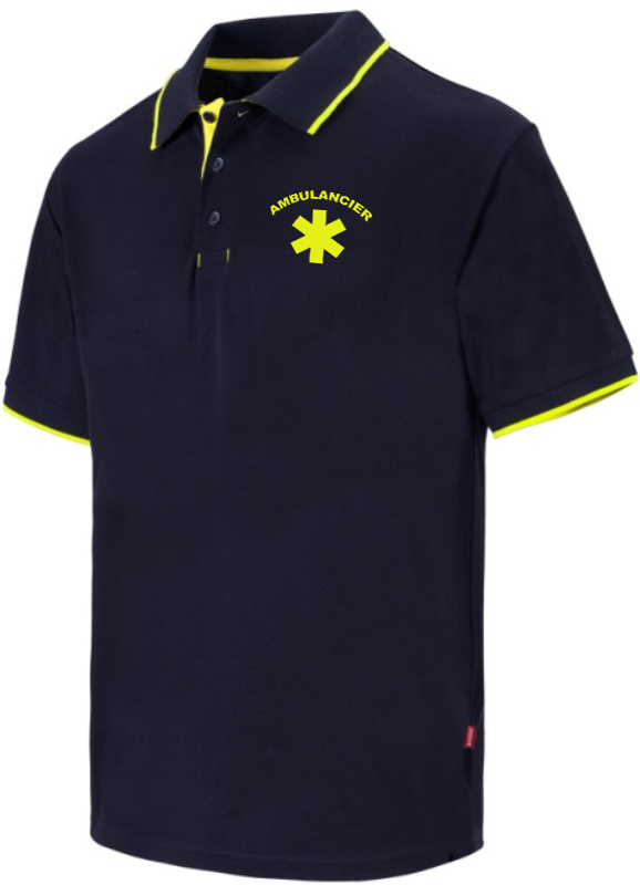 POLO UNISEXE COMBI-FLUO MANCHES COURTES AMBULANCIER. 60% COTON / 40% POLYESTER, 180 G/M². TXS A 3XL - MARINE/JAUNE FLUO ref.POLA5505MRJ
