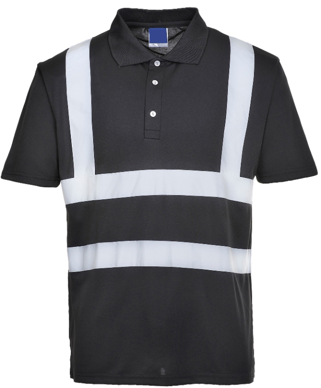 POLO VIGILE UNISEXE SECURITE REFLECT. 100% POLYESTER, 155 G/M² - TS A 6XL - NOIR ref.POLF477NR