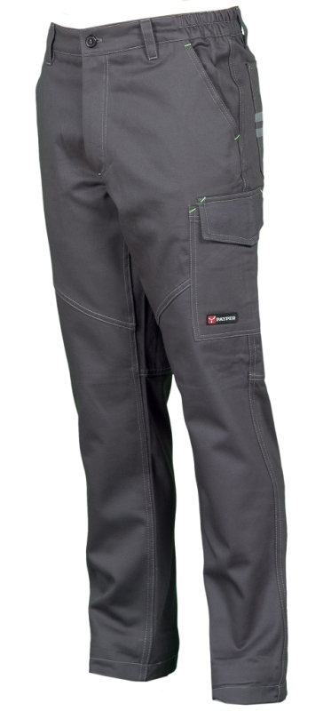 PANTALON UNISEXE BADGE SYSTEM STRETCH. 98% COTON TWILL / 2% ELASTANE 300 G/M². EN ISO 13688. TXS à 5XL - GRIS FONCE ref.PWORKSTGRF