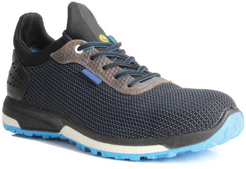 TENNIS DE SECURITE POUR HOMME COMME POUR FEMME, RUNNING NOIR/BLEU, ULTRA-SOUPLE, METAL FREE, ESD, HRO, 100% RECYCLABLE.TIGE: Textil K3D ultra-respirant, hydrofuge.