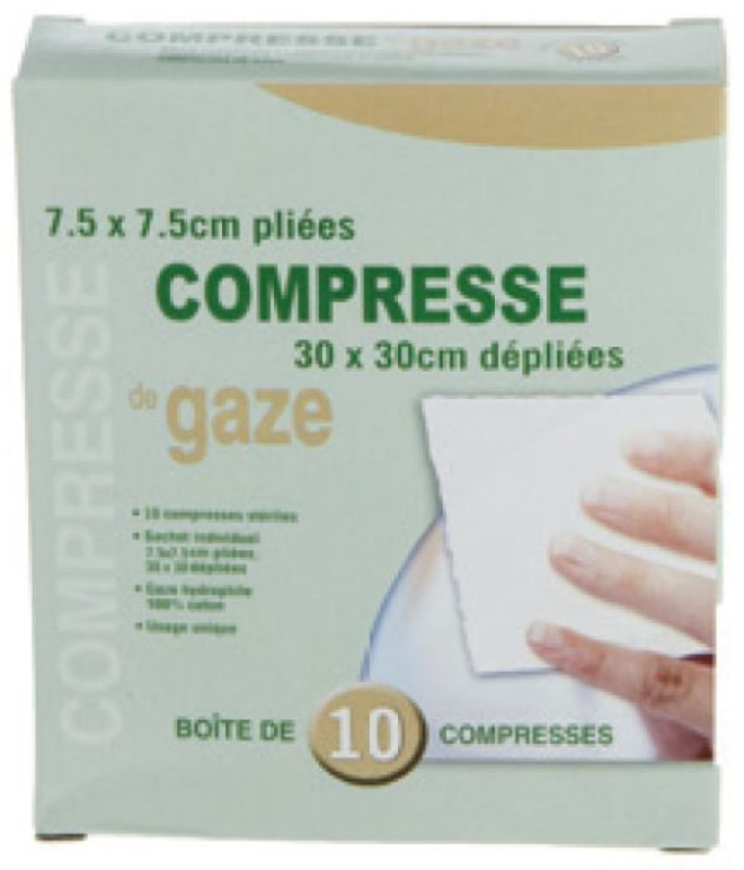 BOÎTE DE 10 SACHETS DE COMPRESSES STERILES - 7,5 x 7,5 plié - 30 x 30 ouvert.
