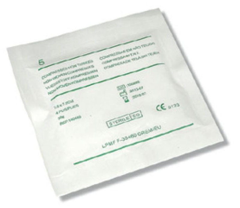 SACHET DE 5 COMPRESSES NON TISSES STERILES- 7,5 x 7,5 plié - 15 x 15 ouvert.