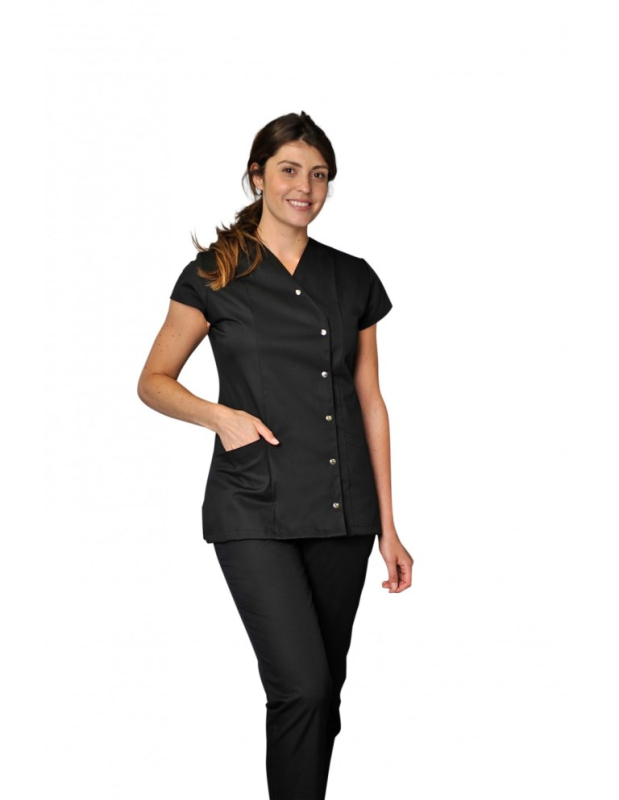 TUNIQUE SALOME. PRESSIONS MANCHES COURTES. UNI POLYESTER / COTON / ELASTHANNE. T0 (36/38) à 6 (60/62) - NOIR ref.SALOMEMCNR