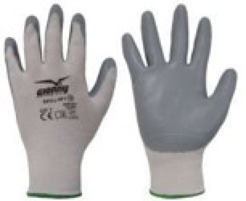 Gants enduits mousse de nitrile, dos aéré, pignet en tricot, polyester 13G. Très résistant.