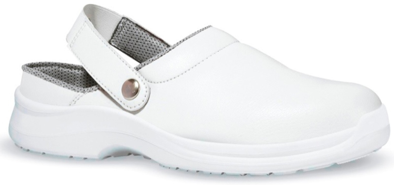 SABOT DE SECURITE POUR HOMME COMME POUR FEMME, A BRIDE, CHR.TIGE: microfibre Lucky blanc, ultra-respirant. Coup de pied matelassé.