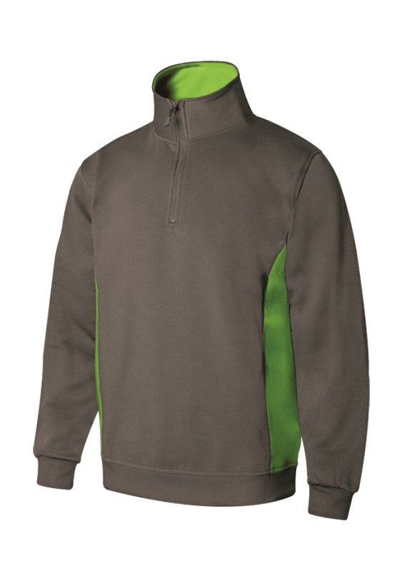 SWEAT UNISEXE COMBI-DUO COL ZIP. 65% POLYESTER / 35% COTON, 260 G/M². TXS A 3XL - GRIS/VERT ref.SW5704GRVT