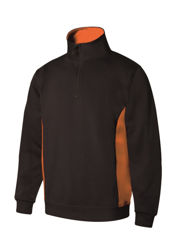 SWEAT UNISEXE COMBI-DUO COL ZIP. 65% POLYESTER / 35% COTON, 260 G/M². TXS A 3XL - NOIR/ORANGE ref.SW5704NROR