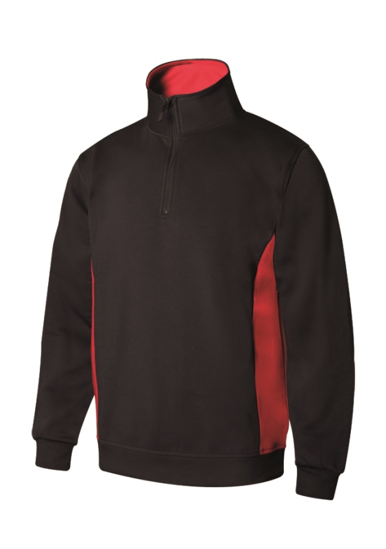 SWEAT UNISEXE COMBI-DUO COL ZIP. 65% POLYESTER / 35% COTON, 260 G/M². TXS A 3XL - NOIR/ROUGE ref.SW5704NRRG