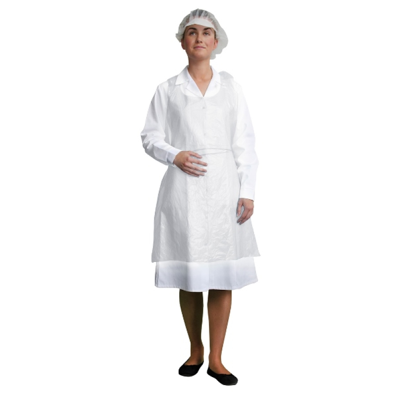 TABLIER DE PROPRETE AVEC BAVETTE. Taille unique. Légèrement gaufré. En polyéthylène. 107 x 69 cm. Epaisseur: 18 microns. Carton de 20 sachets de 100 pièces. Protège vos vêtements de la salissure, des tâches, des éclaboussures. Très léger. Sans entretien (usage unique).