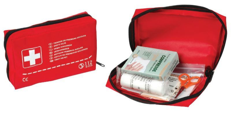 TROUSSE DE SECOURS VEHICULE 1 A 2 PERSONNES, en tissu souple et étanche. Dimensions 180 x 130 x 60 mm. Facilement logeable dans une boîte à gants. Comprenant : Pansements de tailles variées, 1 couverture de survie, 2 lingettes chlorhexidine, 5 compresses non tissées, 1 rouleau de sparadrap, 1 paire de ciseaux à bouts ronds, 1 pince à écharde, 1 bande extensible 3 m x 5 cm, 1 bande extensible 3 m x 7 cm.