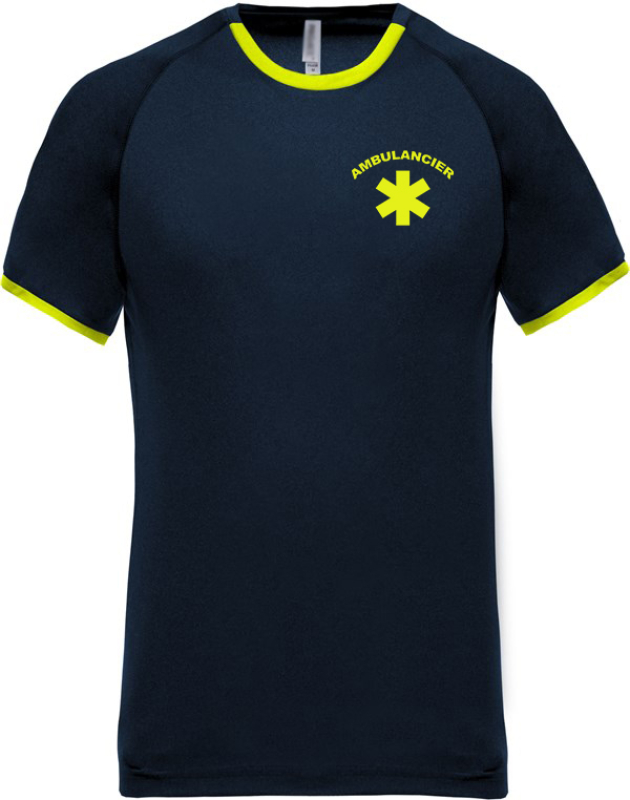TEE-SHIRT UNISEXE COMBI-FLUO MANCHES COURTES AMBULANCIER. 100% POLYESTER, 150 G/M². TXS À 3XL - MARINE/JAUNE FLUO ref.TSA406MRJ