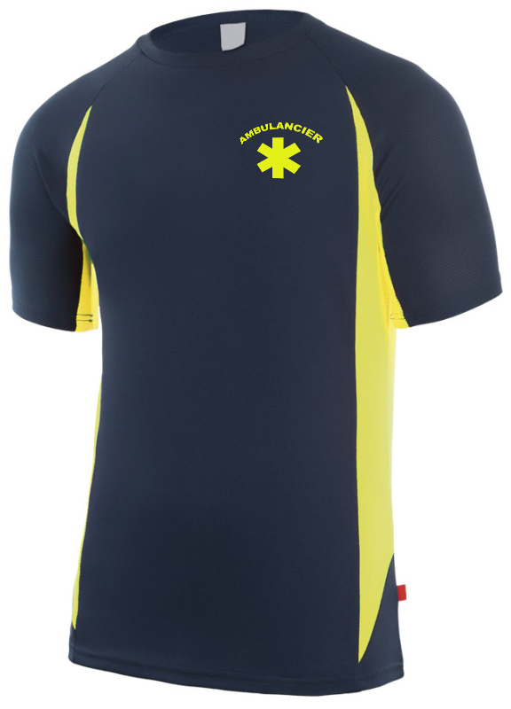 TEE-SHIRT UNISEXE COMBI-FLUO MANCHES COURTES AMBULANCIER. 100% POLYESTER, 160 G/M². TS À 3XL - MARINE/JAUNE FLUO ref.TSA5501MRJ
